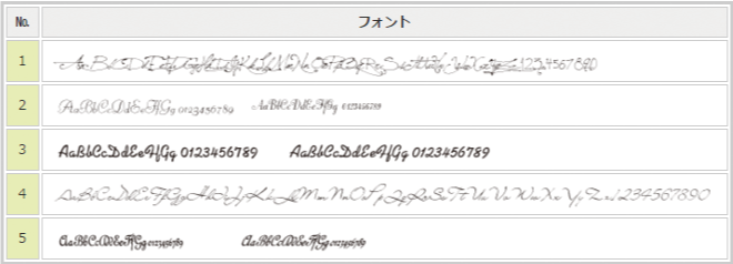 フォント指定に関しましては、下記のフォント以外にも、一般的なフォントをご指定いただいても可能です。